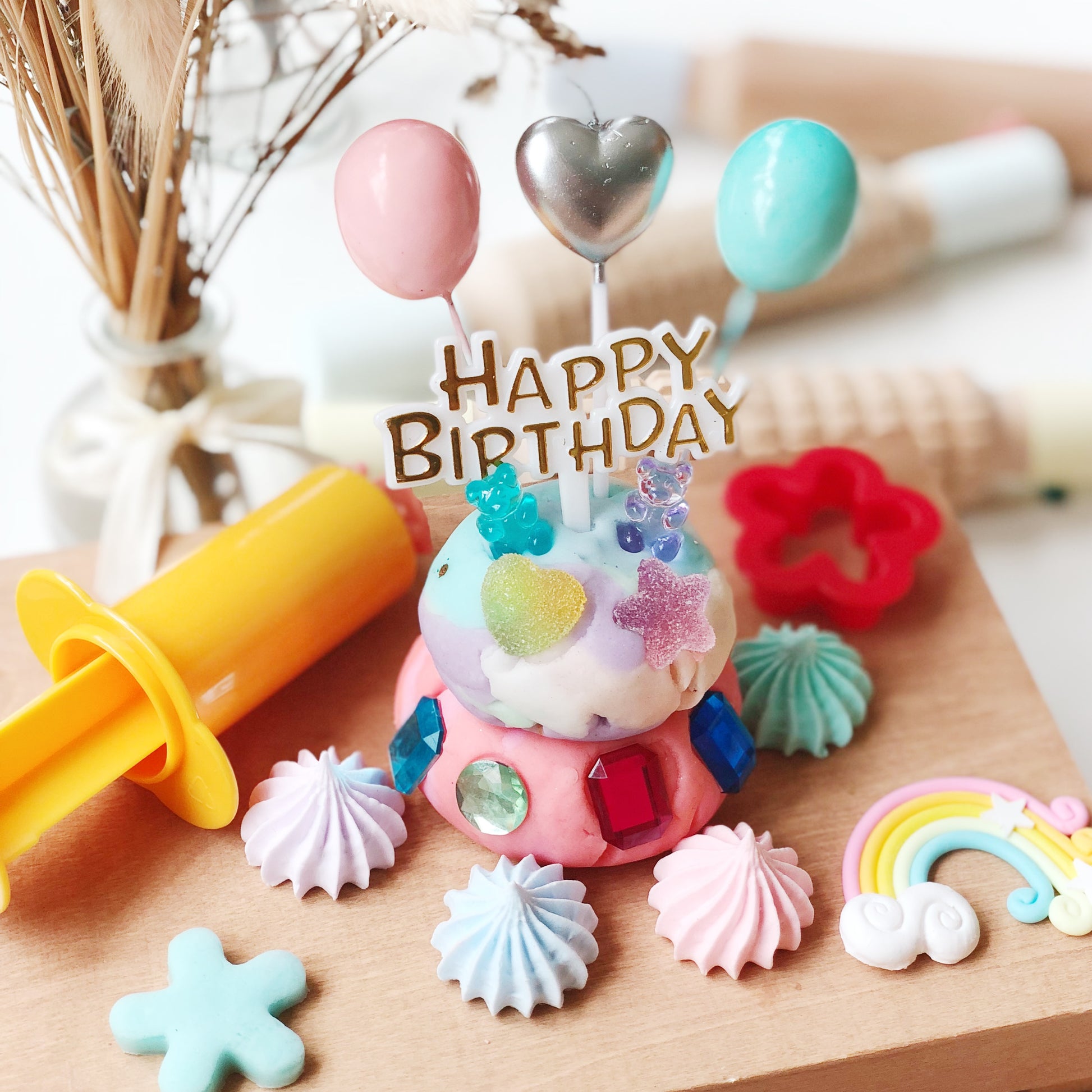 - Loose parts decorations: 1 rainbow tag, 4 candles, 1 Happy Birthday tag, 8 assortment of star and heart decoration, 3 balloons decorations