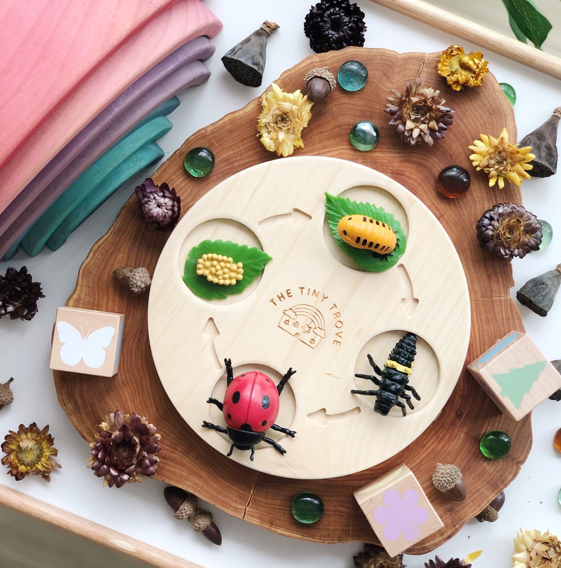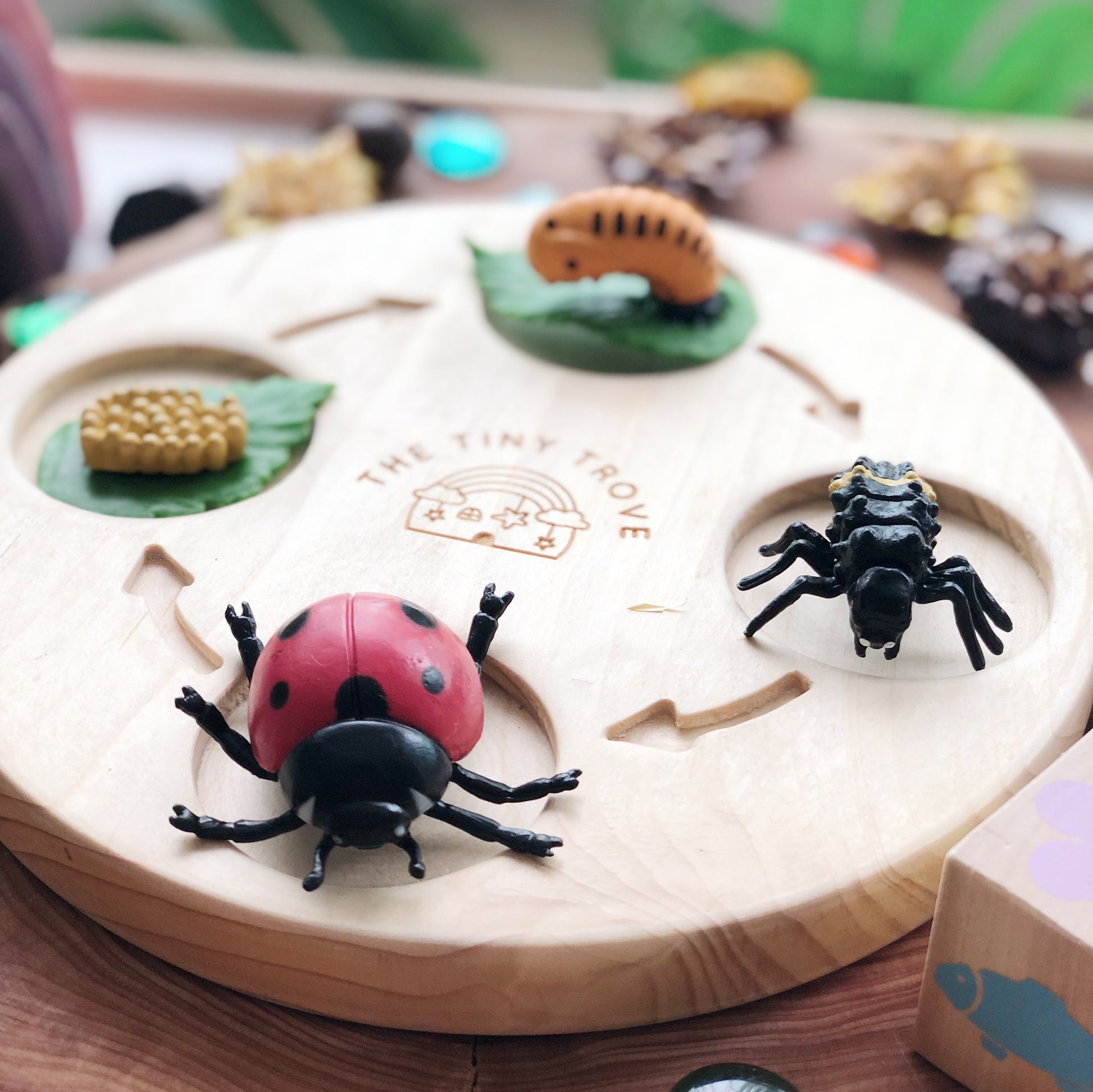 Life Cycle of a Lady Bug Learning Set consists of the following figurines: Egg, Larva, Pupa and Lady Bug.