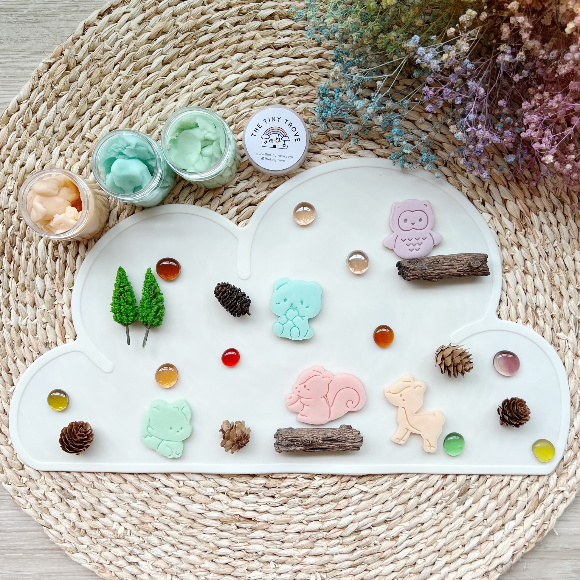 Explore the forest, peep through the bushes and say hi to this cute little forest creatures! Add some fun to your forest theme play!
