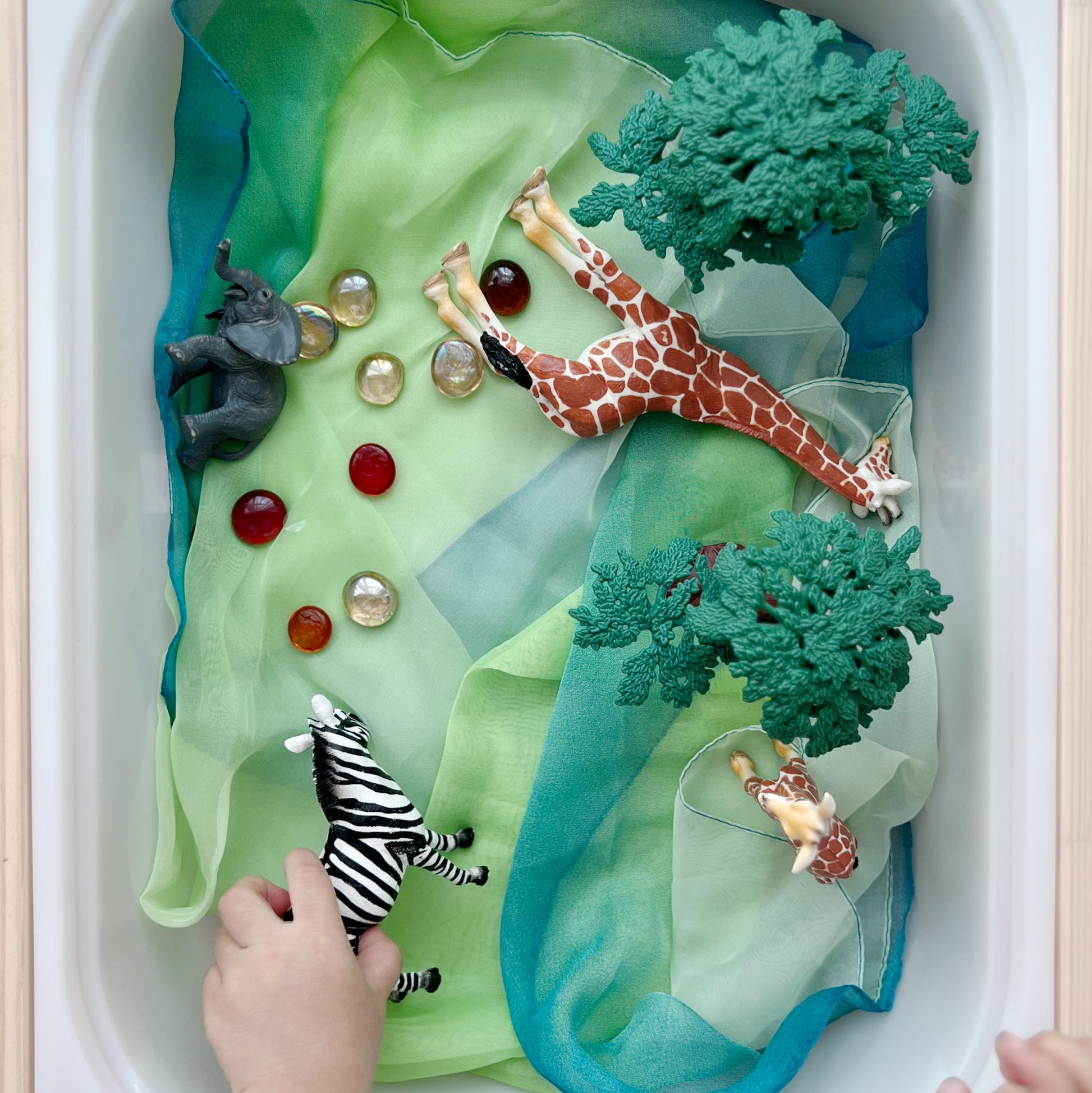 Inspired by Waldorf Toys, the Play & Learn Sensory Scarf (Green) encourages children to unleash their imaginations. These versatile scarves can be used as capes, dress-up accessories, doll blankets, costumes, and more! Perfect for both boys and girls, children will love dancing, moving, and dressing up with these vibrant scarves.
