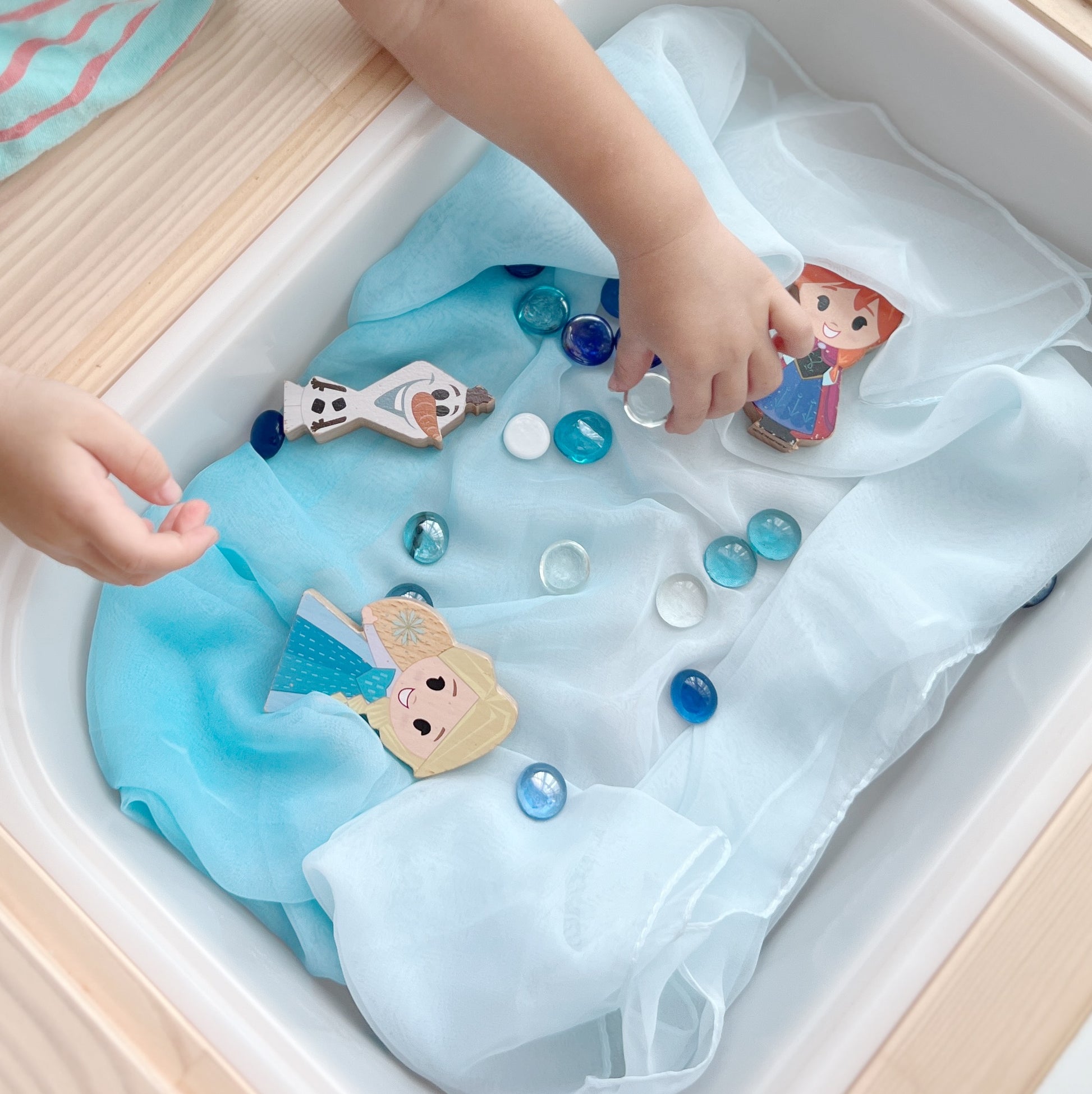 Inspired by Waldorf Toys, the Play & Learn Sensory Scarf (Light Blue) encourages children to unleash their imaginations. These versatile scarves can be used as capes, dress-up accessories, doll blankets, costumes, and more! Perfect for both boys and girls, children will love dancing, moving, and dressing up with these vibrant scarves.